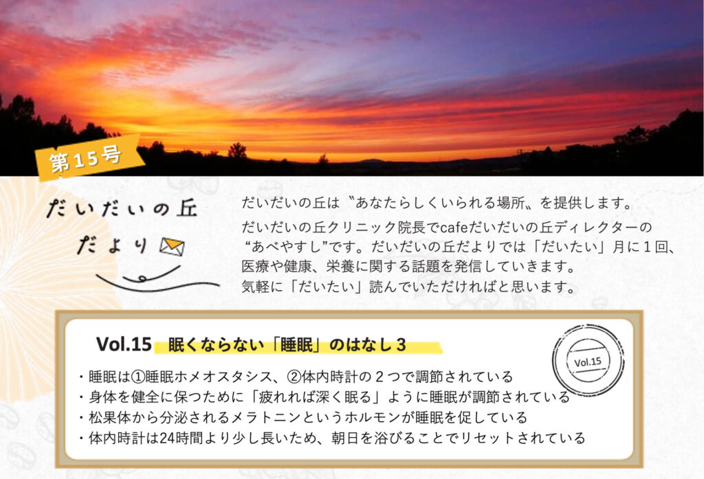 第15号は、「眠くならない「睡眠」のはなし 3」